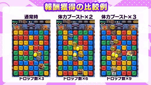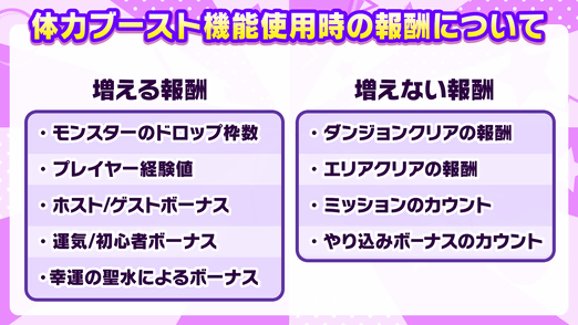 ◆「体力ブースト機能」使用時に「増える報酬」と「増えない報酬」について
