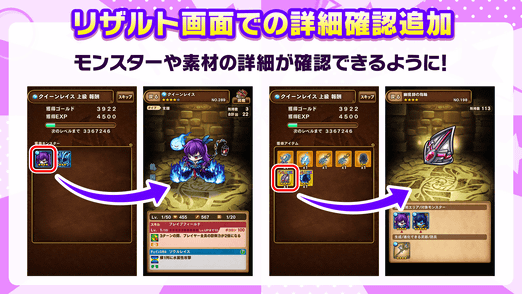 ※獲得したモンスターや素材について、アイコンを長押しすることで詳細情報を確認できます。