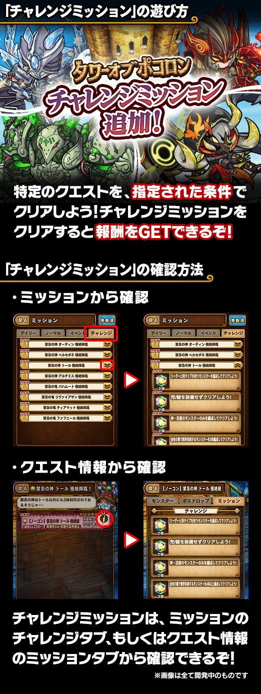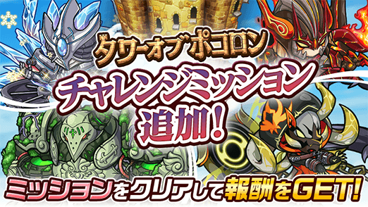 タワーオブポコロン「フィンブル編」「プロミネンス編」「アースガルド編」「カタストロフィ編」にチャレンジミッション追加!