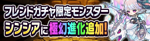「フレンドガチャ」で獲得可能な限定モンスター「シンシア」に★7極幻進化を追加!★7になることで、属性が雷属性から無属性になります。