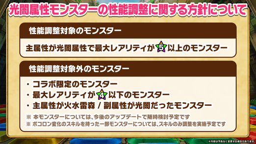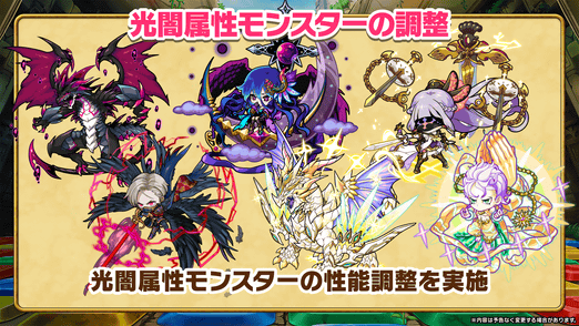 光闇属性の改修に伴い、光闇属性モンスターの性能に関する調整を実施します。