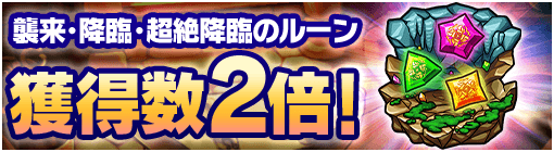 期間中、ルーンダンジョン「聖輝なる魔石の洞窟」で獲得できる「襲来・降臨・超絶降臨のルーン」の数が2倍に!